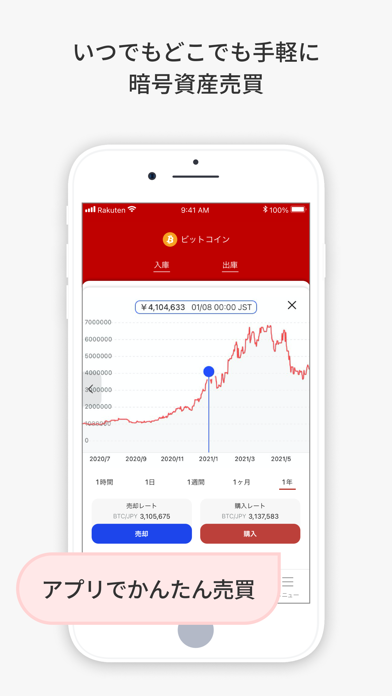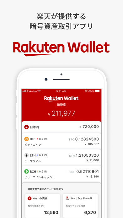 暗号資産取引ができる楽天のウォレットアプリ。日常生活で貯まった楽天ポイントをビットコインやイーサリアムに変えることができます。手軽にポイントを金融資産に変換し、資産の価値を高められるのでとてもお得。さらに保有資産の確認や、ほかのウォレットへの資産移動もスムーズに行えます。