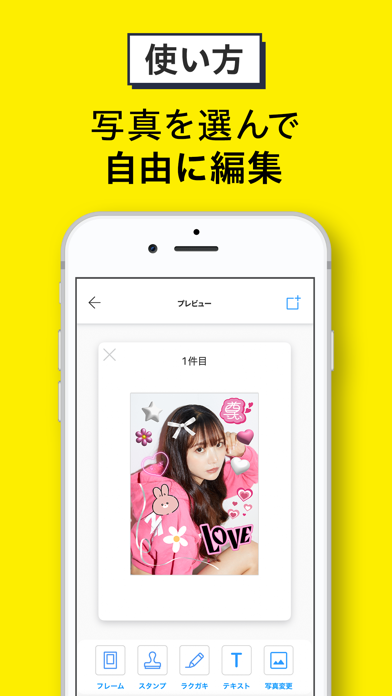 - かわいいスタンプやフレームが充実。自分らしく加工できる