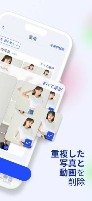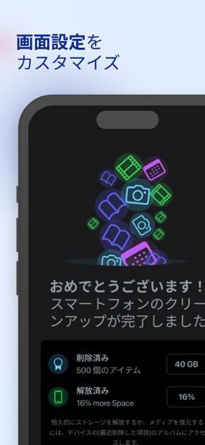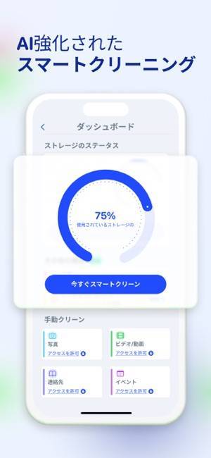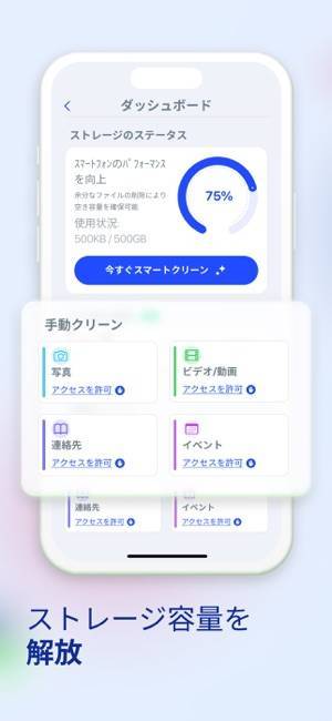 デバイス内の余計なファイルをAIが見つけ出し、整理してくれるアプリです。余計なファイルを自動で検出し一掃し、iPhoneの容量を確保。スマホのもっさりとした反応速度を改善してくれます。大量のファイルを一つ一つ手動で削除する手間が省けるため、時間がない人でも整理可能です。