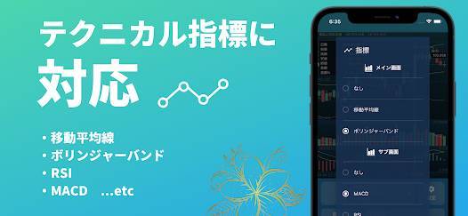 テクニカル分析用の指標を表示できる