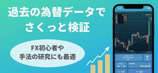 無料でFXのバックテストが行えるアプリです。過去のチャートを利用して、自分の手法がどれくらい稼げるのかを確認できます。もちろん実際のお金は利用しないので、FX初心者の練習にもぴったり。