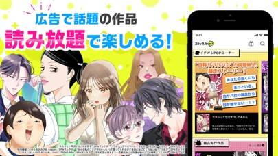 - 広告やSNSで話題の作品を掲載。女性に刺さりやすいマンガが豊富
