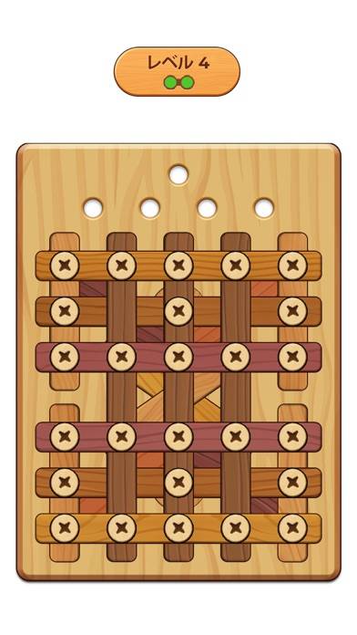 ネジを外して木の板を取り除くカジュアルゲーム。外したネジを空いている穴に移動させて、全ての木の板を下に落とせばステージクリアです。シンプルなルールでありながらも、解決までに思わず熟考してしまう戦略性に富んだゲームです。