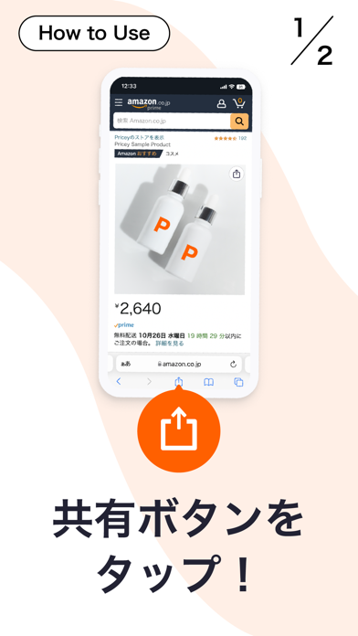 - ショッピング中に共有ボタンから本アプリを起動。ほかと価格をすぐ比較