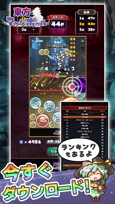 キャラクターゲームに留まらないクオリティに注目。東方Projectと2023年にブレイクした落ち物パズルゲームが合体した本作。戦略的なバトル要素が搭載されており、類似のパズルゲームとははっきりと区別化されています。