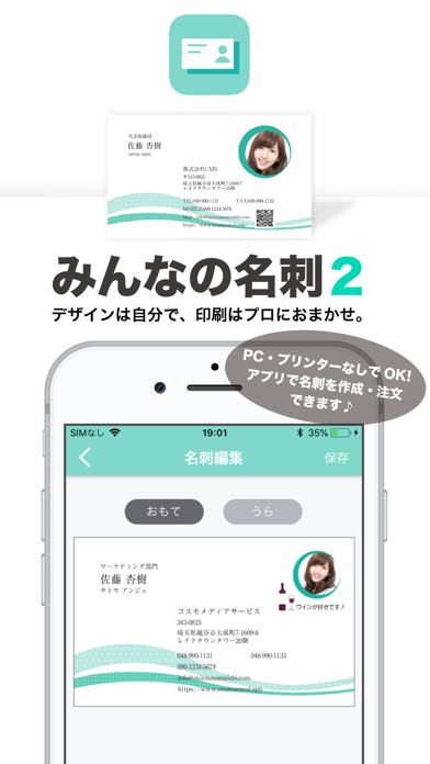 - 作成した名刺はアプリから発注できる。アプリで名刺作成が完結