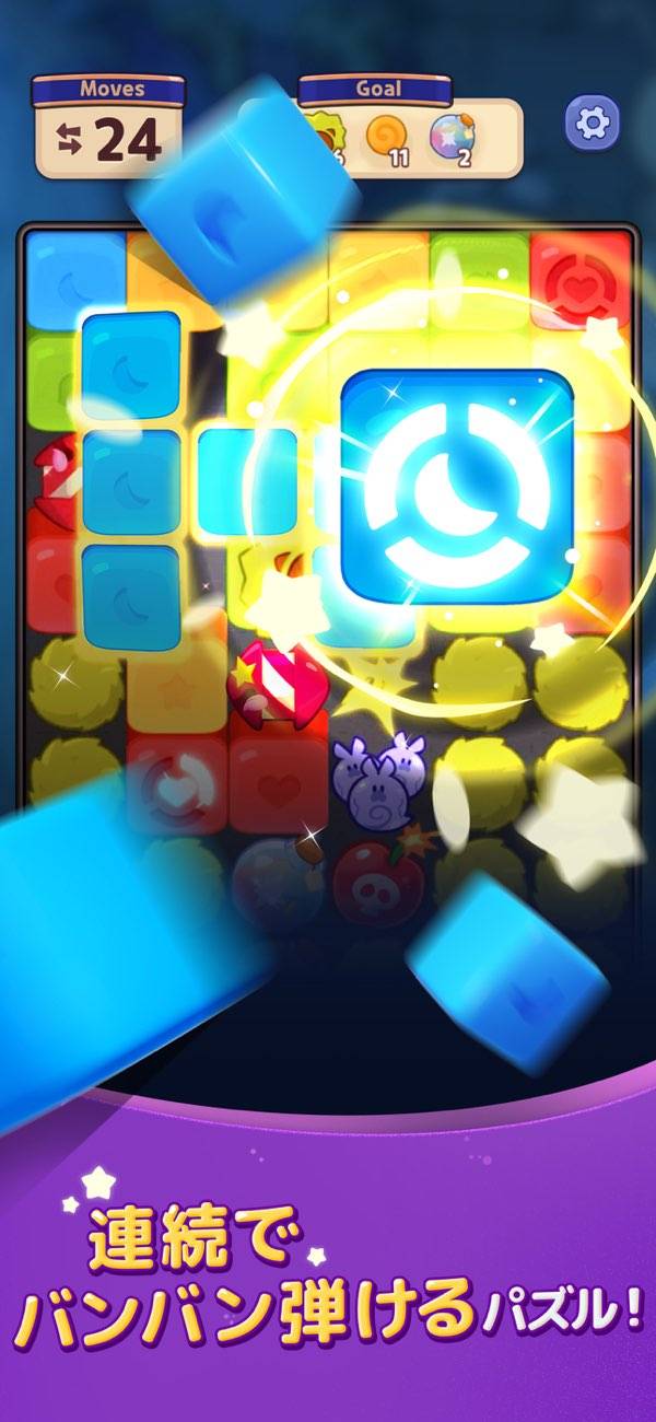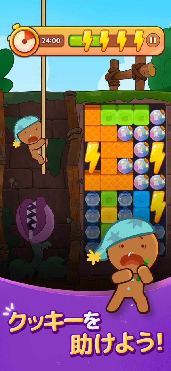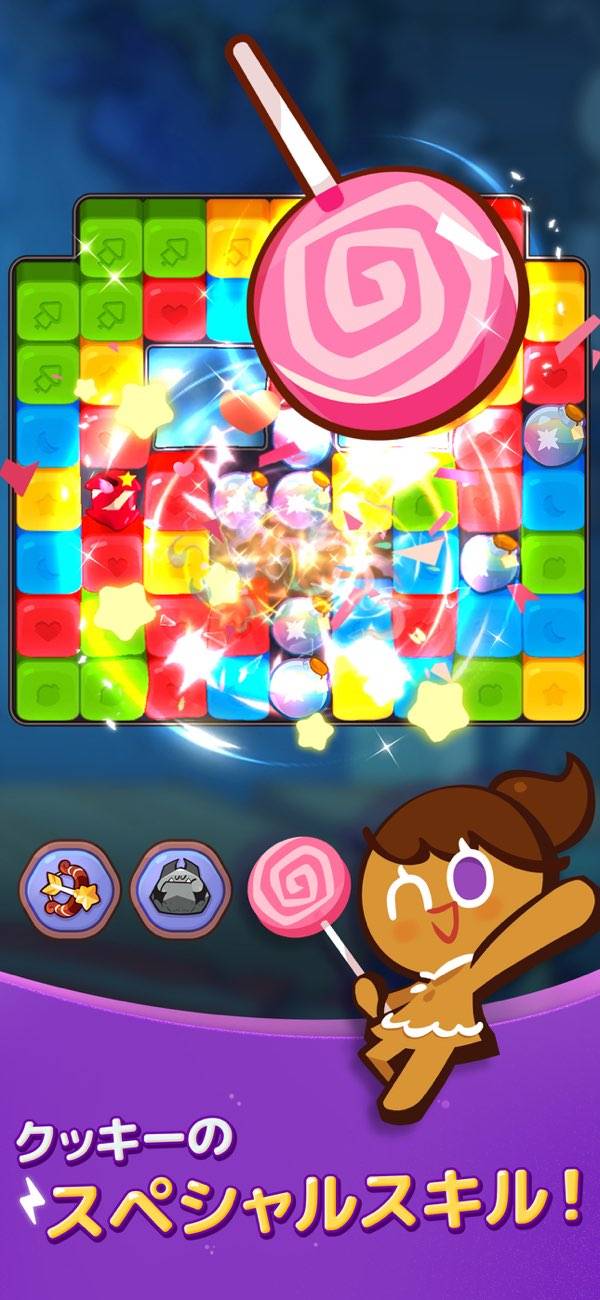 人気シリーズ「クッキーラン」の世界を舞台にしたパズルADVです。パズルは隣り合わせになった2つ以上の同じ色のブロックを、タップして消していくブラスト系を採用。またパズルステージをクリアすると、クッキーたちの冒険物語が進行するというアドベンチャー要素もあります。
