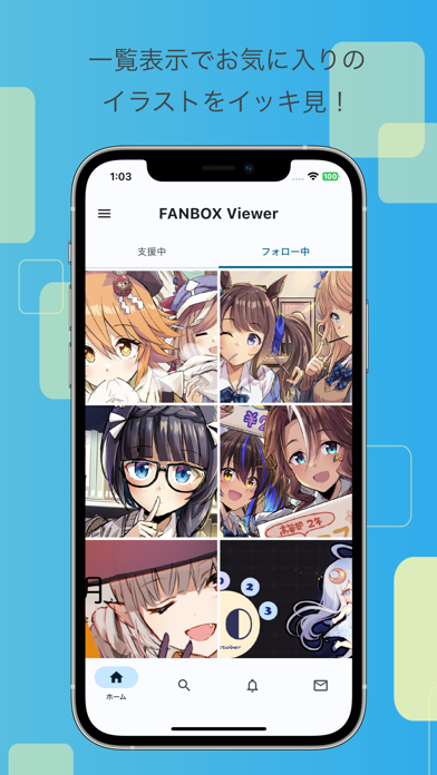 FANBOX愛用者におすすめの見やすいビュアーアプリです。お気に入りのイラストを、グリットで一覧表示できるため、好きなだけ堪能できます。さらにダウンロード機能も完備されており、オフラインでもイラストを楽しむことが可能に。