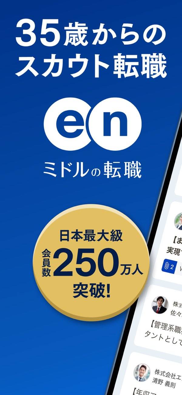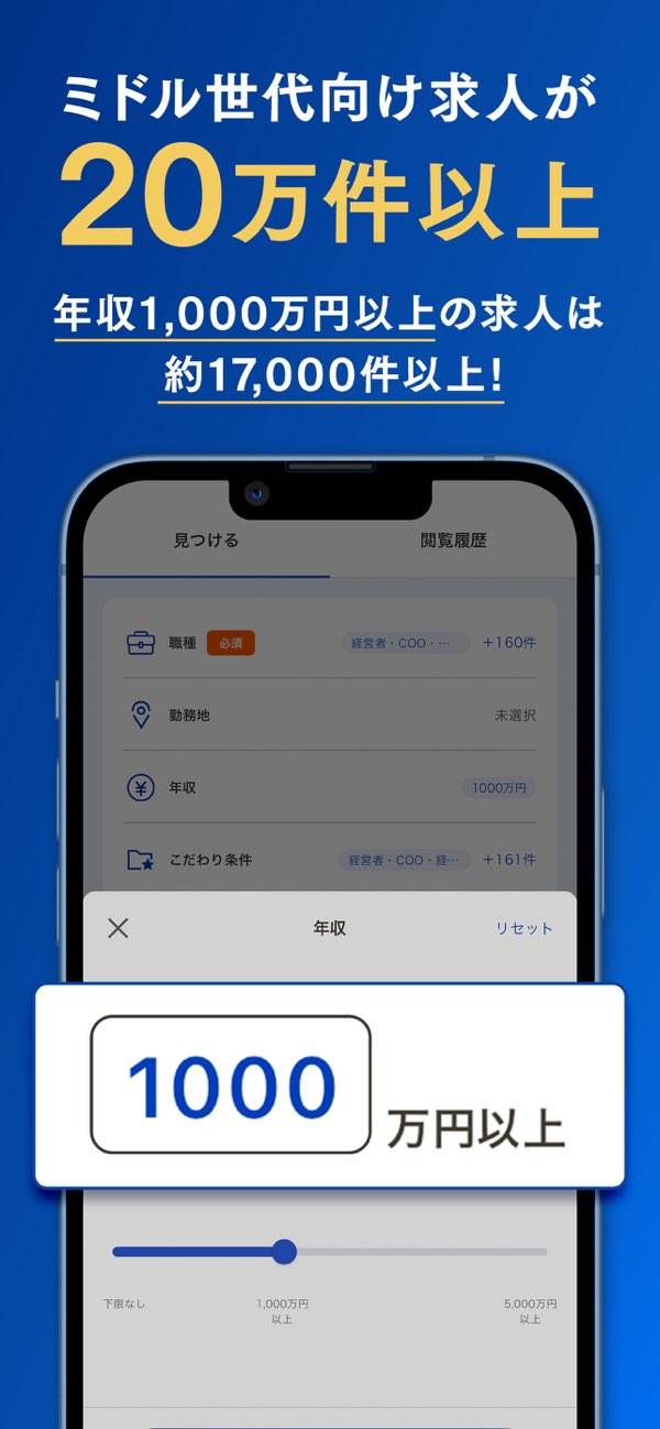 ミドル向けの求人情報が20万件以上掲載されている求人・スカウト転職アプリです。地方の企業や、リモートワーク可など、細かいニーズに応えた求人も多数。大手企業や高収入などハイクラスも狙えます。