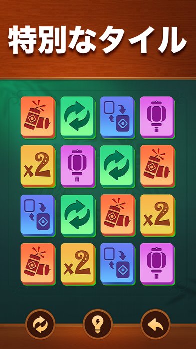 序盤のステージはタイルが少なく、初心者でもサクサク解いていけます。「ほかのタイルの下敷きになっていない」「ほかのタイルに挟まれていない」この2つの条件を満たす牌を2枚1組で取り除いていきましょう。次々とタイルを取り除いていくとなかなか爽快です。