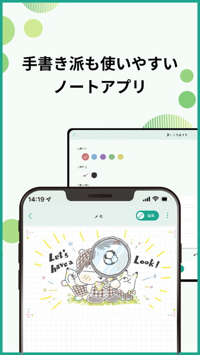 - 快適な書き心地、画像挿入や共有も可能。実物のノート以上の使い勝手