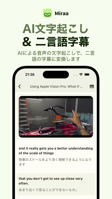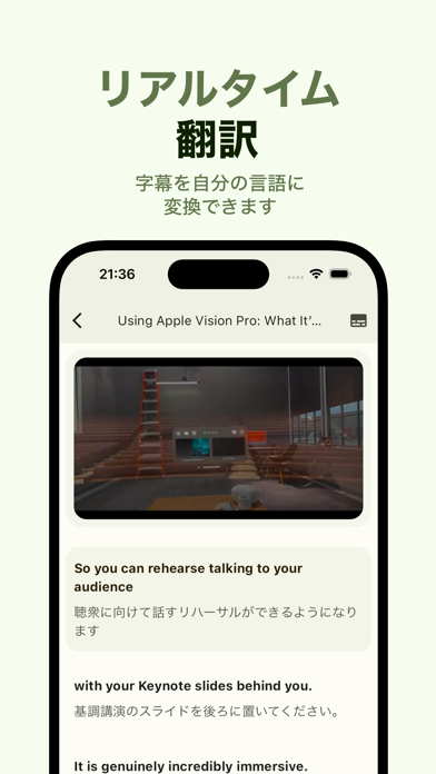 - 動画内の言葉をテキスト化&翻訳。喋っている箇所を追ってくれる機能も