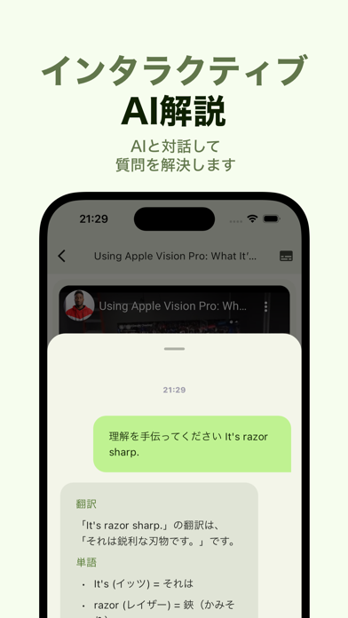 - さらに詳しい単語の意味や文法を、すぐさまAIが解説