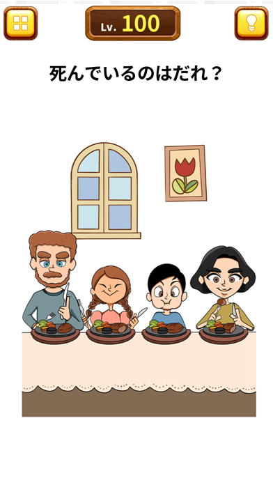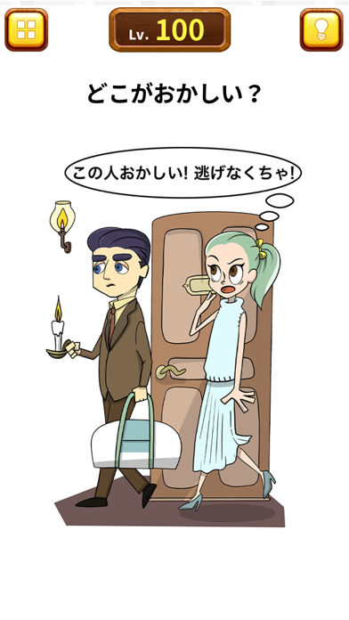 イラストを隅々まで眺めて、正解を導き出しましょう。「これだ!」と思いタップをしたら不正解に引っかかったり、一方で引っかけを乗り越えて正解を閃いたり、出題者との知恵比べを手軽に体験できます。
