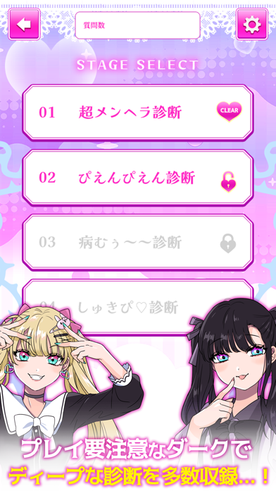 自分では気づかなかった一面が見えてくるかも。メンヘラ(ちょっとだけ心に闇を抱えた人)に関する21の診断、全部で400の質問が収録された性格診断アプリです。「もしかしてメンヘラと思われている?」そんなときにでもちょっと試してみましょう。