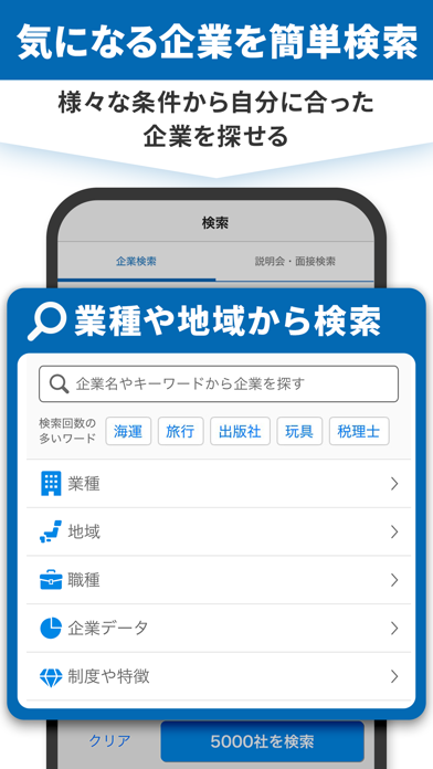 - エントリー予約機能で先手必勝。興味のある企業を探しやすい