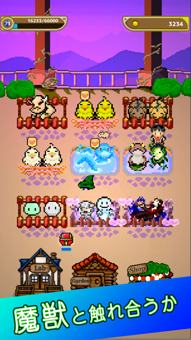 - 箱庭に魔獣たちを自由に配置、触れ合いで素材集めができる