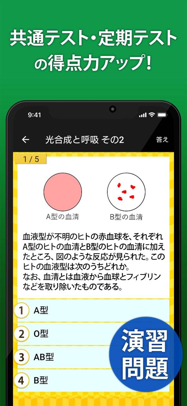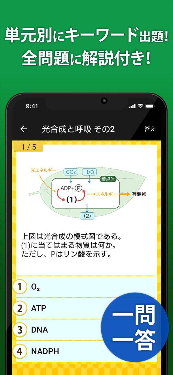 「高校生物基礎の重要基本事項を完全収録」という触れ込みの学習アプリです。各問題は4択問題となっているため、いつでもどこでも勉強できるお手軽さに注目。