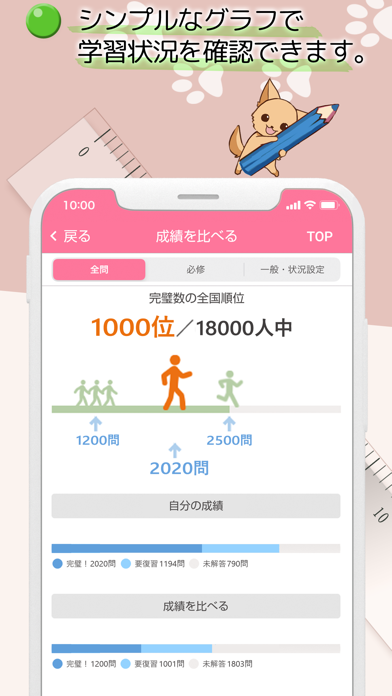 間違った問題を集中的に出題したり、日々の成果を記録したりと機能も申し分なく、十分な学習に取り組めるでしょう。