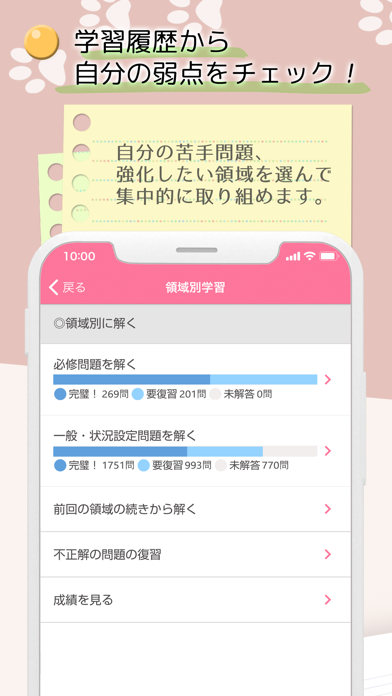 - 章や領域ごとに問題が分かれており、勉強したい範囲を選びやすい