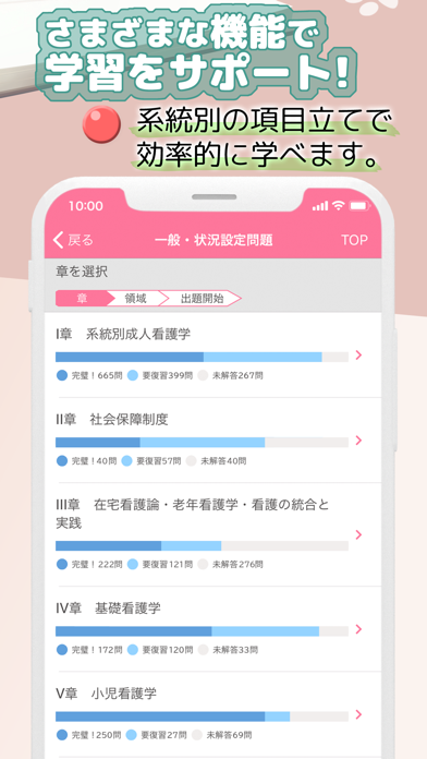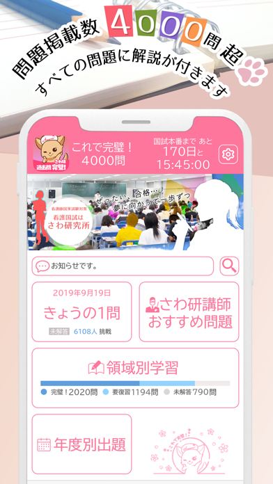 - 看護師国家試験のための学習ができるアプリ。多彩な出題方法で解答