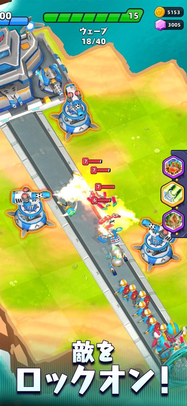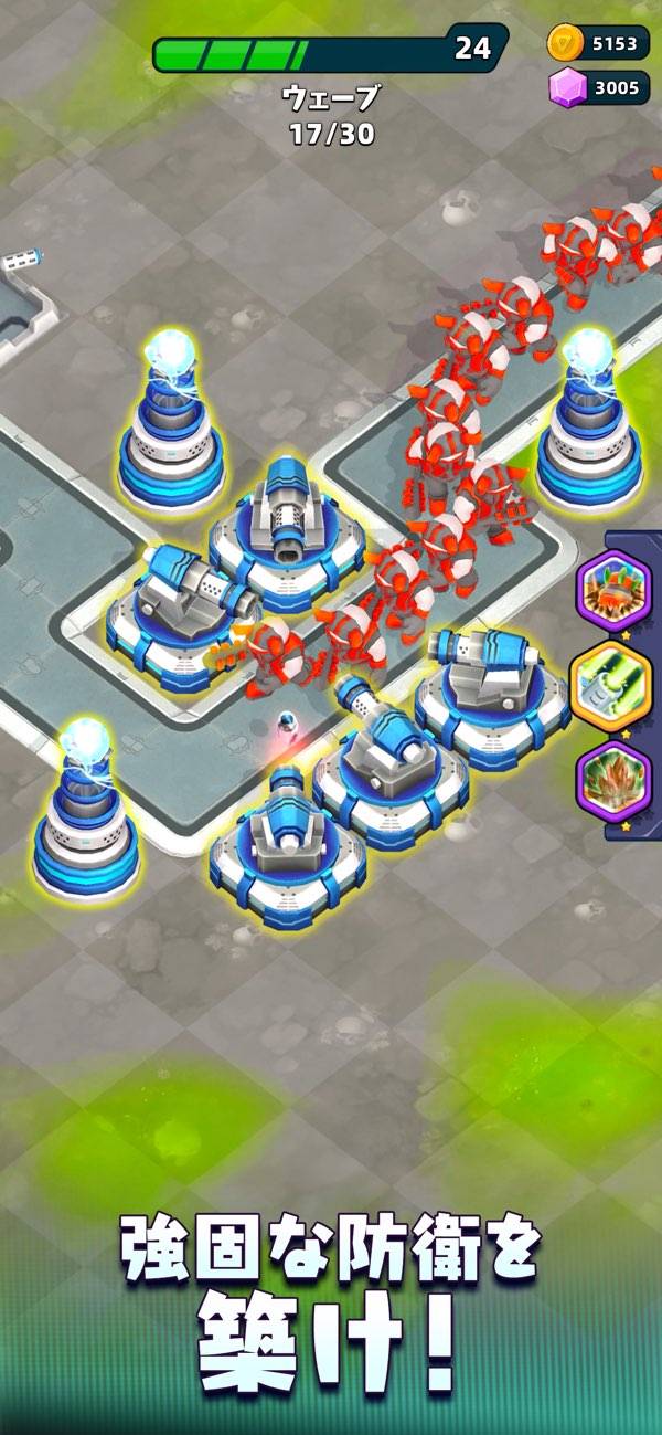 自動のタワーと手動のスキルで敵を撃退