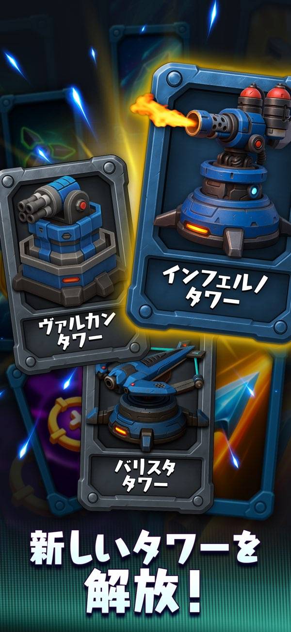 近未来的な世界観と、個性的な武装が目を引くタワーディフェンスゲームです。襲い来る大軍に対し、タワーを設置して拠点を防衛するオーソドックスなシステム。