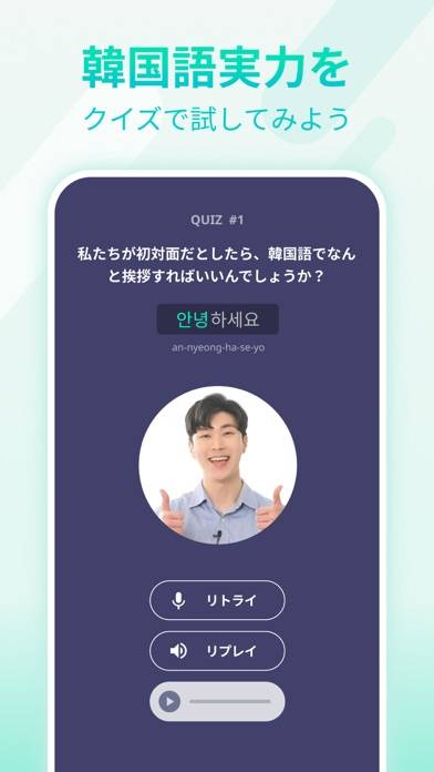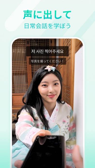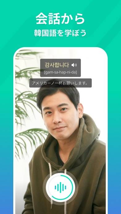 韓国語の日常会話を、初級レベルから学べるアプリ。いわゆるシャドーイングに近い方法が採用されています。韓国語のレッスン動画の中にユーザーが発声をするパートが挟まれており、正しく発声すると動画の続きが再生されるという方式。
