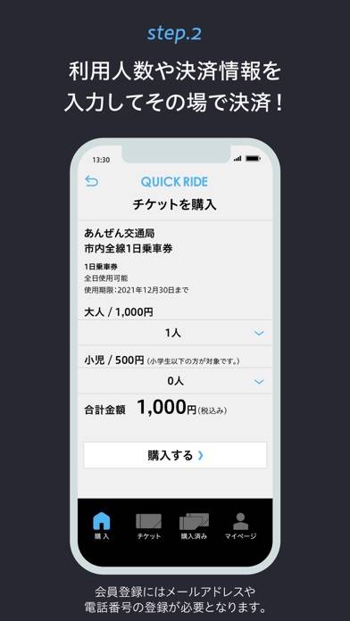 - 企画券、回数券、定期券などを選択し、その場で即購入できる