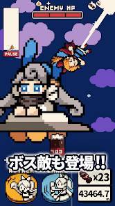 単に飛ぶだけでは終わらないゲーム性となっているのもポイント。敵を撃退する要素がいいアクセントになっています。システム上、敵が画面に現れるのはほんの一瞬のため、「!」の警告表示を見て「ATTACK」を押しましょう。それとぐるぐるパンチがかわいい。