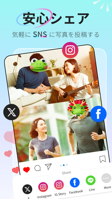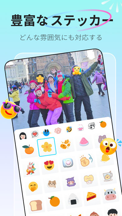 AIが人の顔を認識して瞬時に顔をモザイクやぼかし加工してくれるアプリ。フィルター加工やビューティーツールといった編集機能がないため、モザイクだけで十分な人に向いているでしょう。桜やレモンの季節限定ステッカーがあるので、顔を隠すのに活用してみると面白いかもしれませんね。