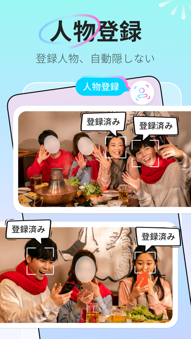 - 人物を特定して自動でモザイクをかけてくれる手軽さが魅力