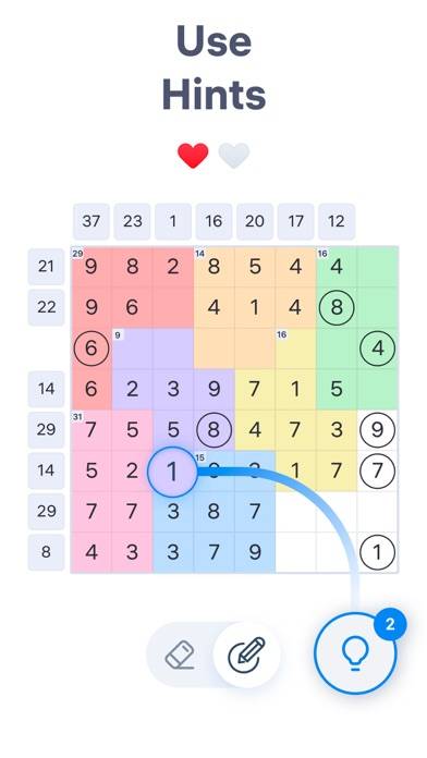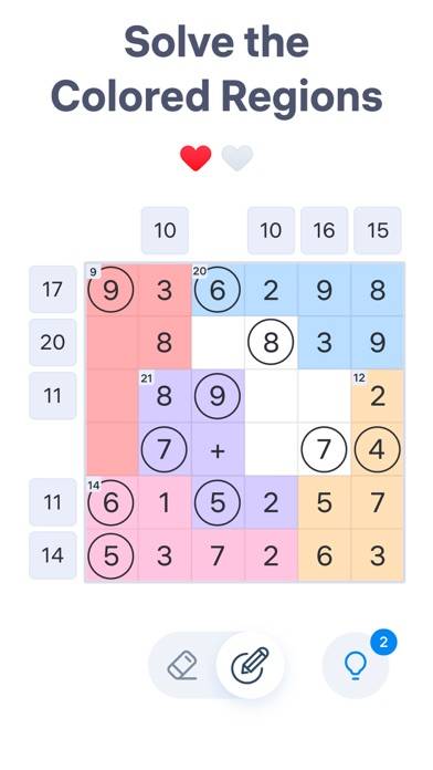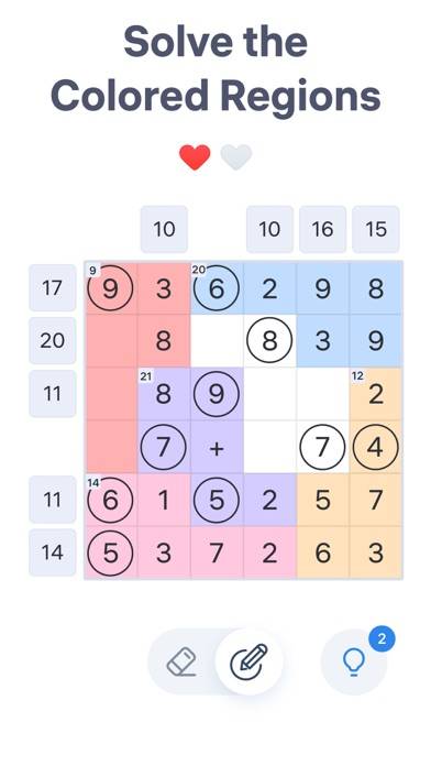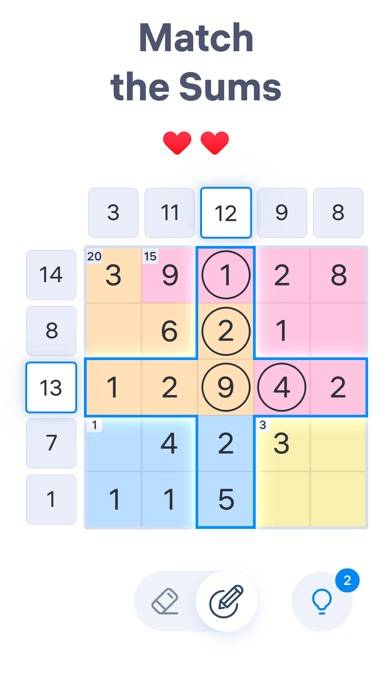 暗算力が鍛えられる数字パズルです。ナンバーサム(Number Sum)における解のルールは、ボードの各行と列の数字の和(sum)を、ボード横の数字と一致させること。正しい数字を丸で囲み、必要のない数字を消去していくことで、ステージをクリアすることができます。