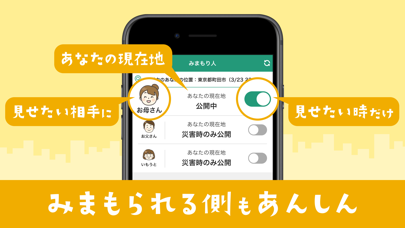 「いまはちょっと位置情報を知られたくないな」という気分のときは、親への情報共有をボタン1つでOFFにできます。いつでも自分のタイミングで見せ方を変えられるから、子どももストレスなく使えるでしょう。子どもの気持ちを大切にしながら使える設計です。
