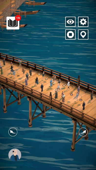タップ操作で江戸の町を探索することができます。移動したいところをタップするだけなので、誰でも楽しめる設計になっています。俯瞰視点だけでなく主観視点でも町を見渡せるので、臨場感もバッチリ。日本橋に隠された、100個の収蔵品を見つけましょう。