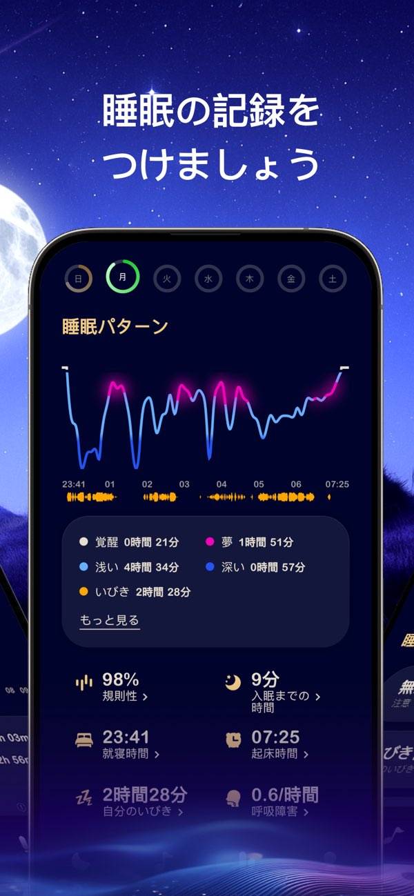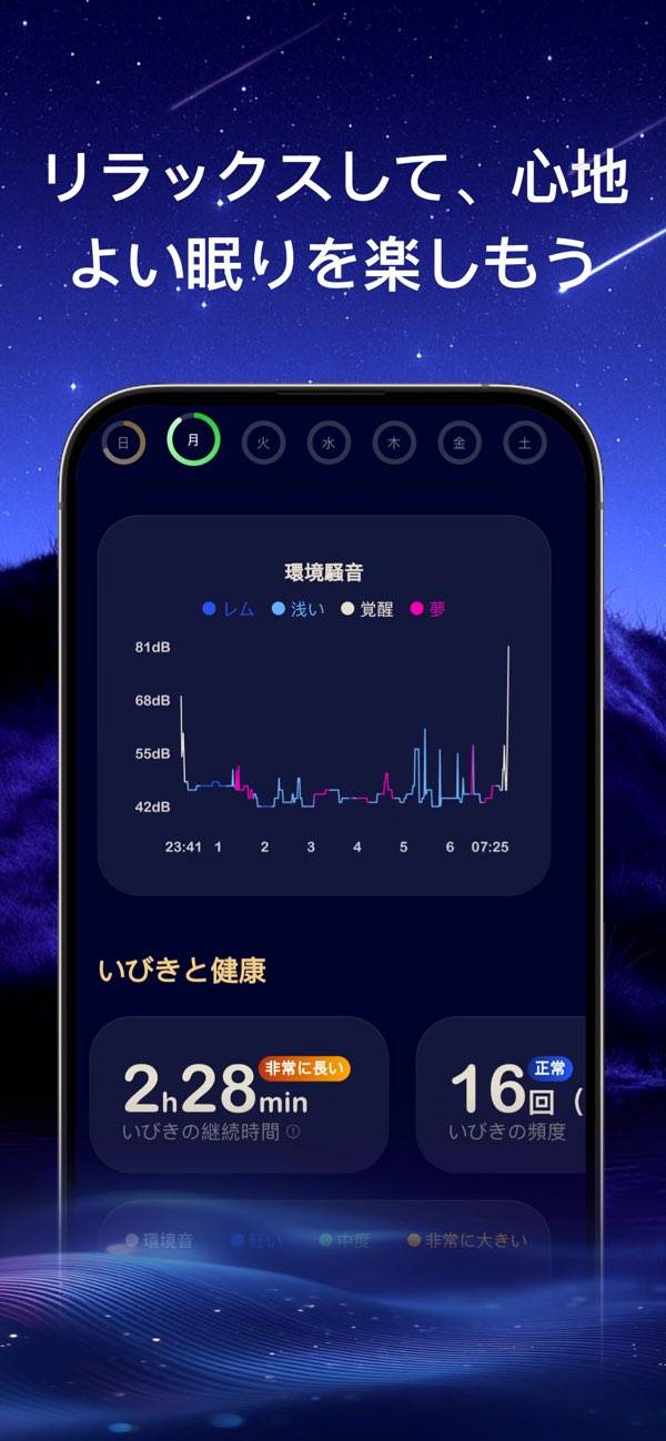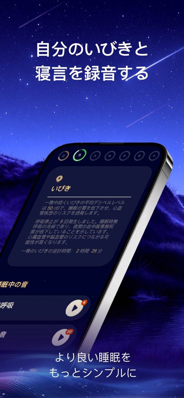 睡眠改善の第一歩に睡眠記録を 無呼吸、いびき、夢言葉、騒音を自動識別