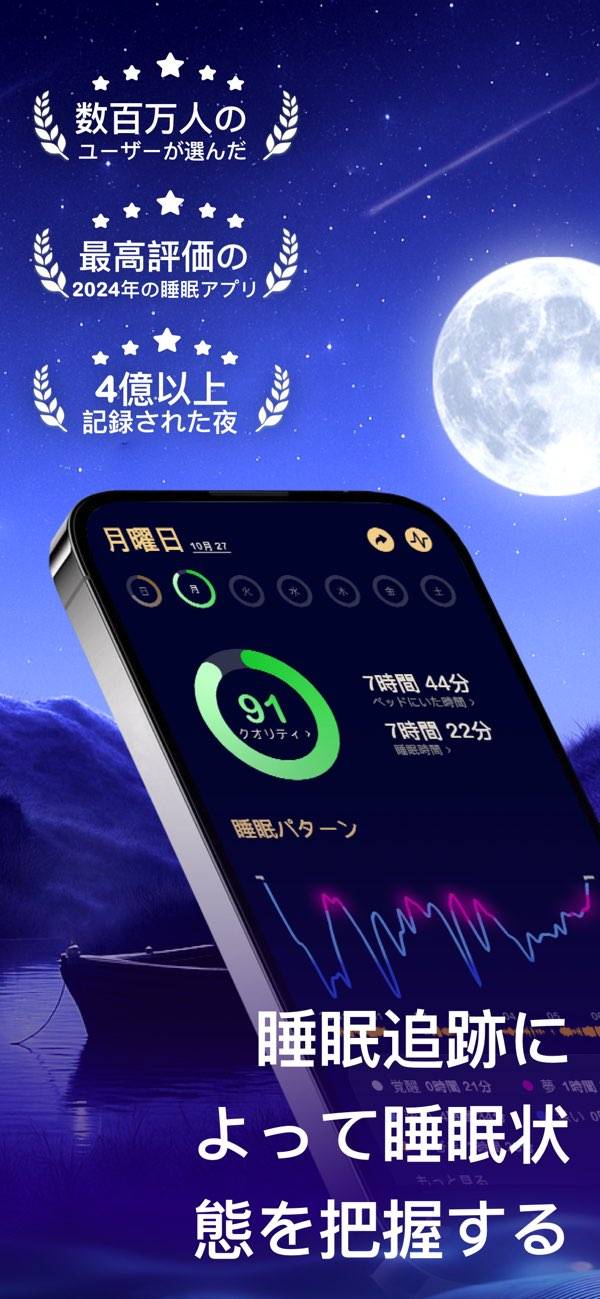 睡眠時の細かなデータを取ってくれる睡眠補助ツールです。「世界中で8,000万人のユーザーが利用」の実績を謳っており、実績としては十分。