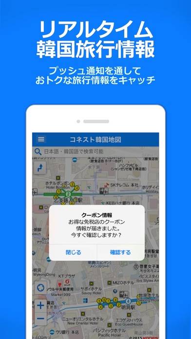 - グルメ・ホテルなど韓国国内のおすすめ情報あり。クーポンの発行も
