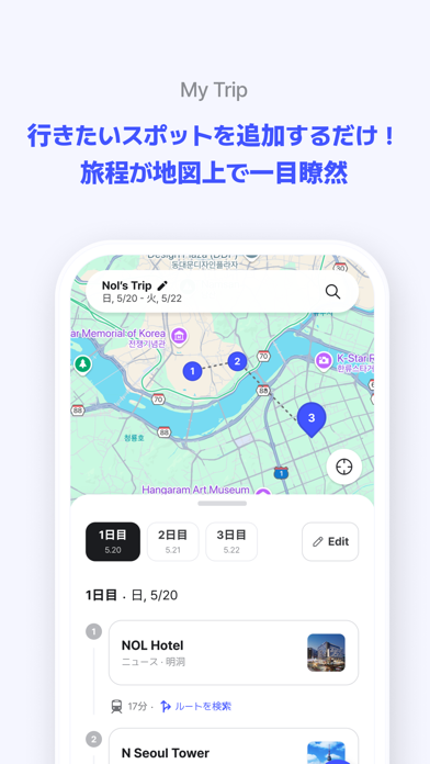 渡韓のナビと予約を一元管理できる旅行サポートアプリです。旅行前にスケジュールを立てる段階から、当日の旅行中まで丁寧にサポート。