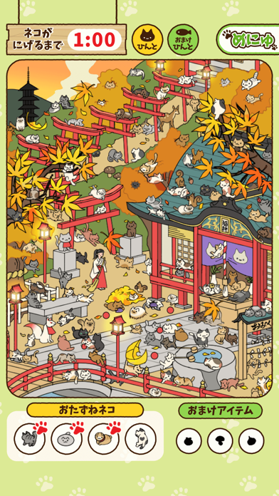 - 目が幸せ。ねこがいっぱいのステージから、目的のねこを探すゲーム