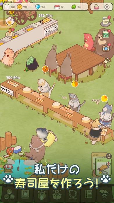 猫が営む屋台の大将として、お店を繁盛させるのが目的です。舞台は森の青空(屋外)レストラン。各調理場を設置することで、あとは放置でOK。お客さんが訪れて売上につながります。かわいい猫たちが働く姿には心癒されること間違いなしです!
