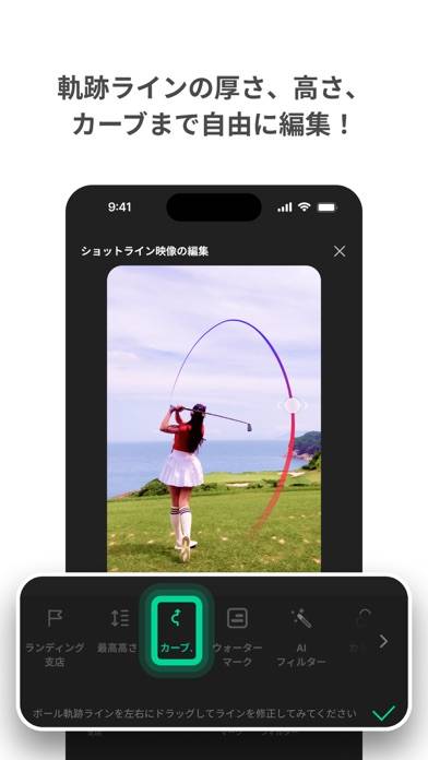 ゴルフの動画に、スイングやボールの軌跡を追加できるツールです。「ショット軌道」ではボールの軌道を、「ヘッドトレース」ではゴルフクラブのヘッドの軌道を描画可能。いずれもAIが採用されており描画しやすくなっています。