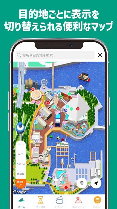 AR地図、リアルタイムの待ち時間情報、クーポンなど、初めての訪問でも楽しく遊び尽くせる工夫がふんだんに盛り込まれています。