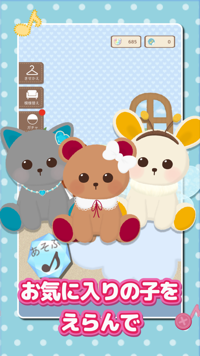 かわいいどうぶつたちの着せ替え要素が楽しめるのもうれしい点です。ぬいぐるみのような熊や猫を自分好みに着飾ることができます。お部屋の模様替えもできるので、リズムゲームの合間に覗いて癒やされましょう。