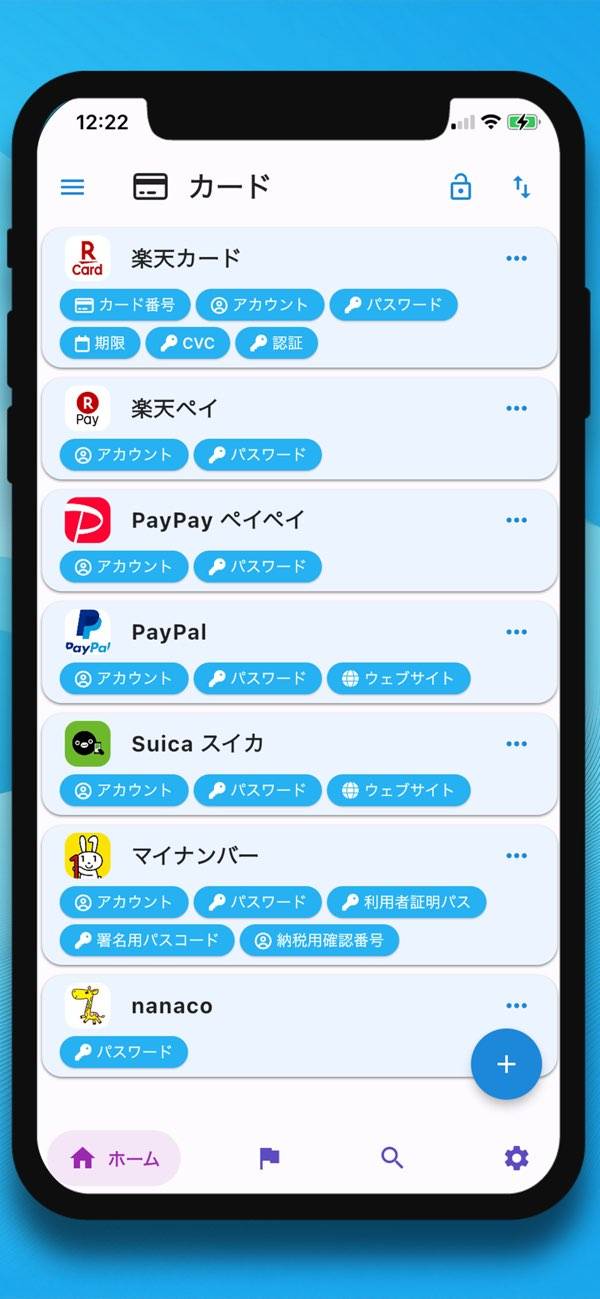 文字列の非表示化ができるため、パスワードの保管にも対応しています。パスワード保管時はロックの併用を推奨。