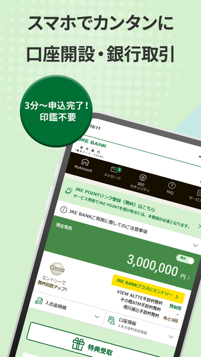 「JRE BANK」公式アプリ 各種取引、新規口座開設もここから 豊富な特典に注目