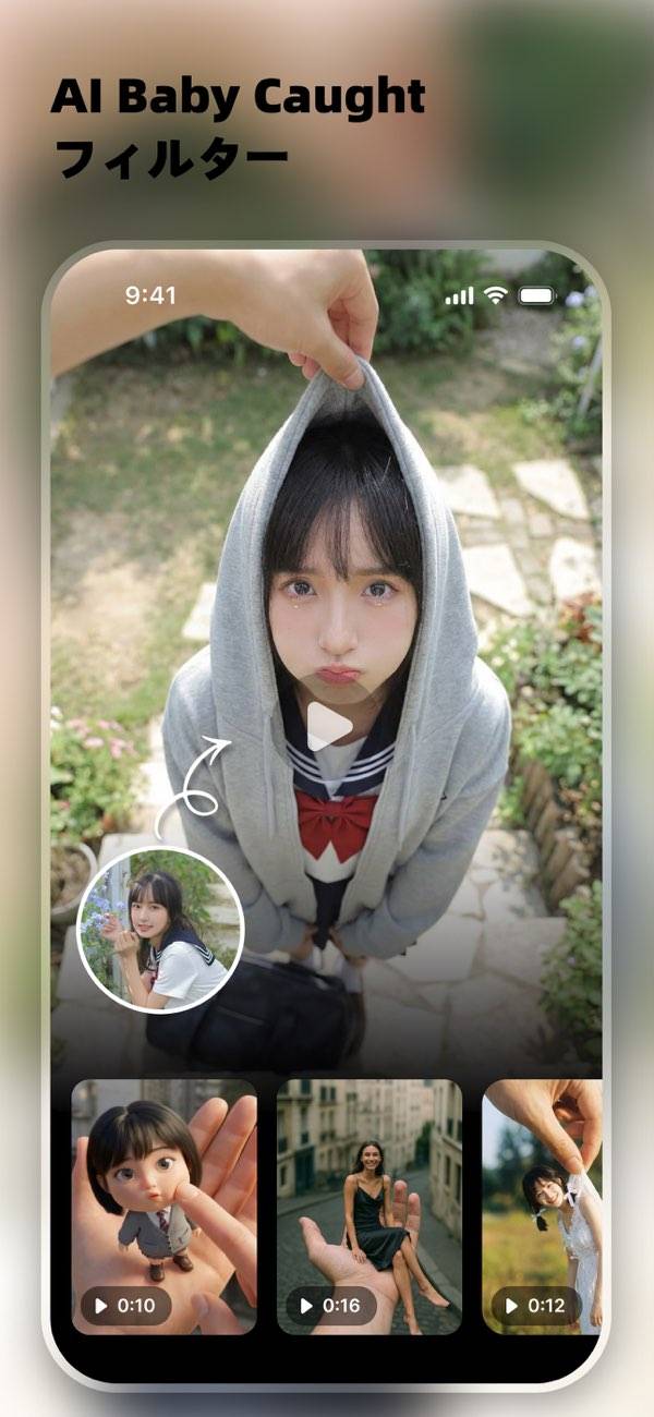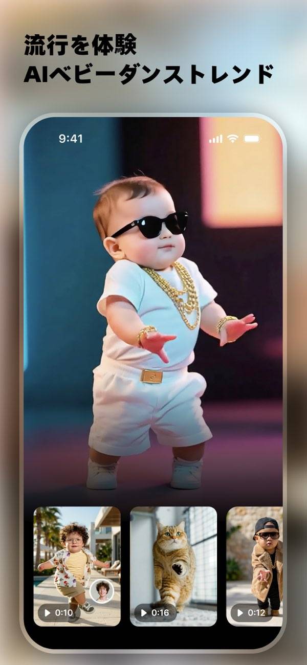 AIフィルターにより、写真や動画の高画質補正が可能です。AIダンスや顔アニメーションなど、ユニークなエフェクトが充実。また傷消し機能もあり、古い写真の修復も可能です。