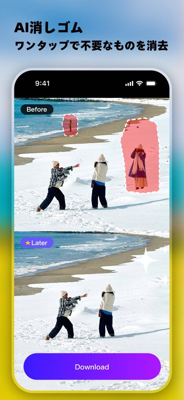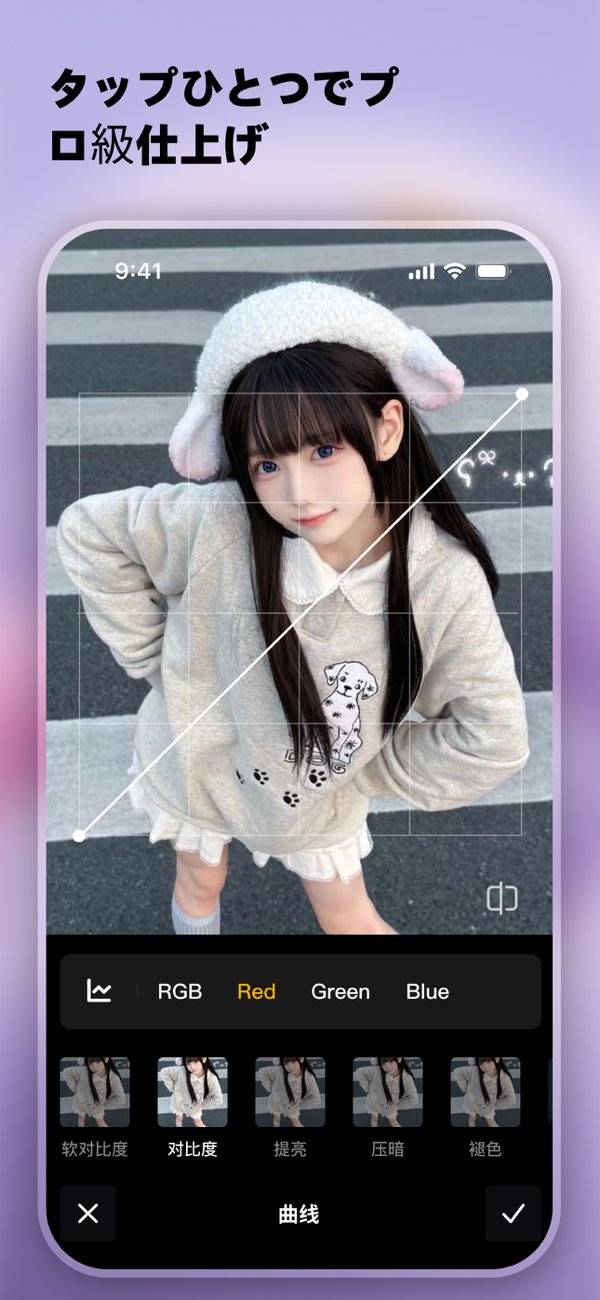AIフィルターと高画質補正があり、写真と動画の編集に特化した写真加工アプリ。多彩なエフェクトとフィルターで個性的なコンテンツを作成できます。SNS用の画像や動画の編集、旅行やイベントの思い出を美しく残したいときにおすすめです。