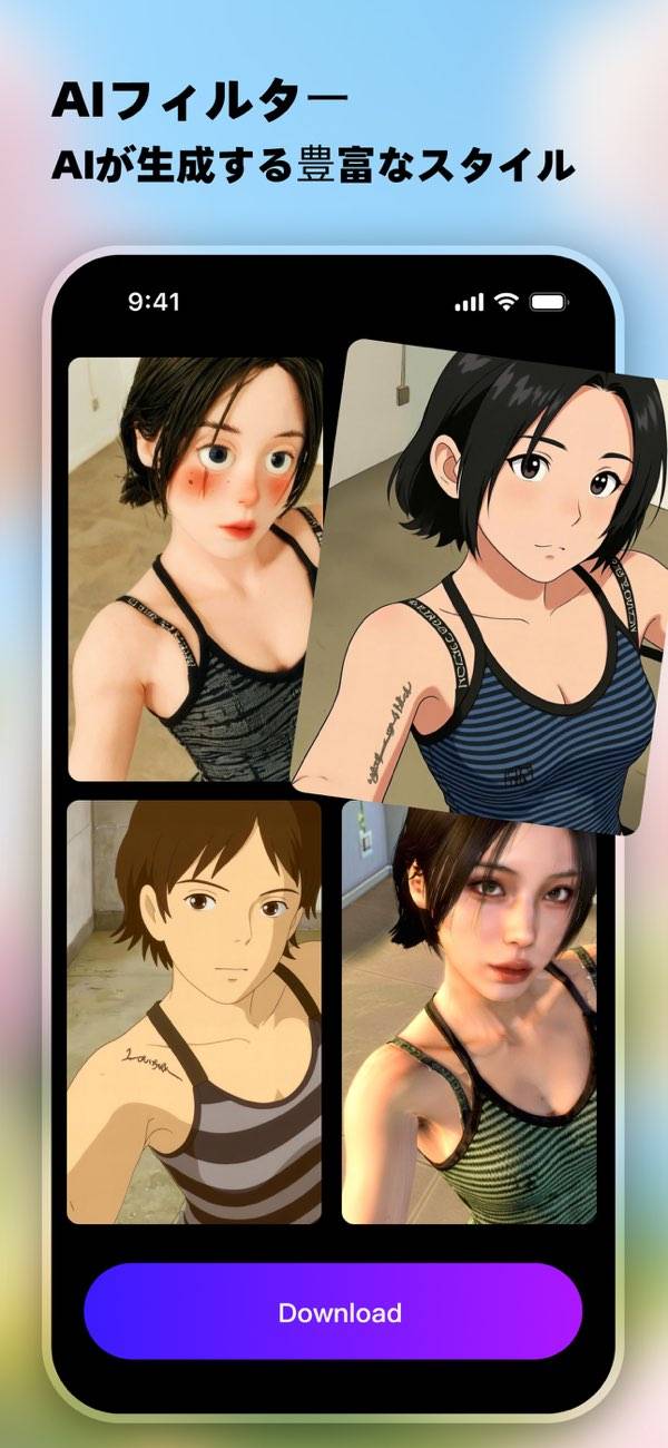 - キャラクター化・漫画化など、AIアプリ独自の機能も搭載