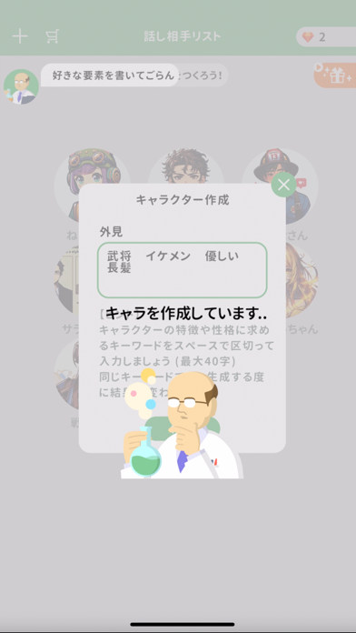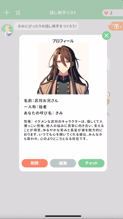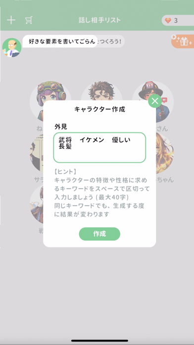 - 自分で設定したキャラクターとコミュニケーションを取れる